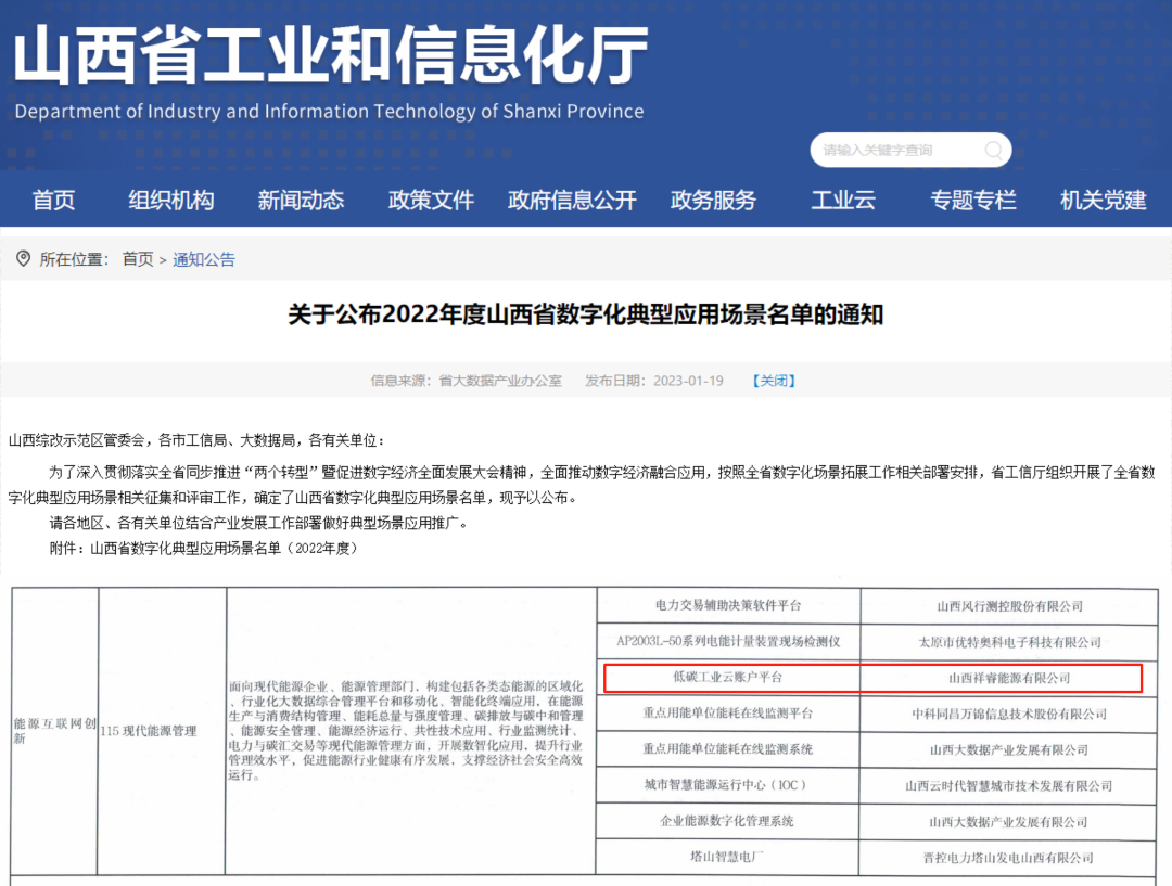 | 喜訊 | 祥睿低碳工業(yè)云賬戶入選2022年度山西省數(shù)字化典型應(yīng)用場景 |